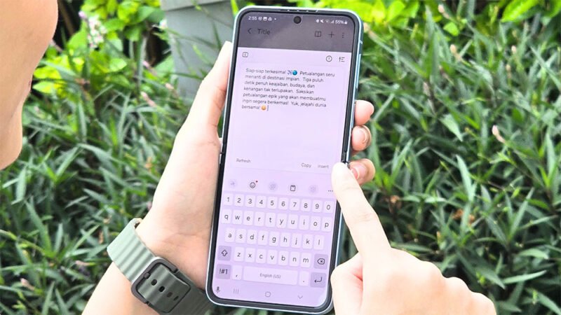 Tidak semua orang memiliki keterampilan untuk membuat caption di media sosial yang unik dan catchy. Akibatnya, banyak yang menggunakan #NoCaption sebagai solusi praktis. Namun, dengan bantuan AI Composer, proses ini bisa menjadi jauh lebih mudah dan efektif. Pengguna Galaxy Z Flip6 dapat memanfaatkan tips AI Composer untuk menyiapkan caption sesuai keinginan tanpa harus menghabiskan waktu untuk merangkai kalimat.