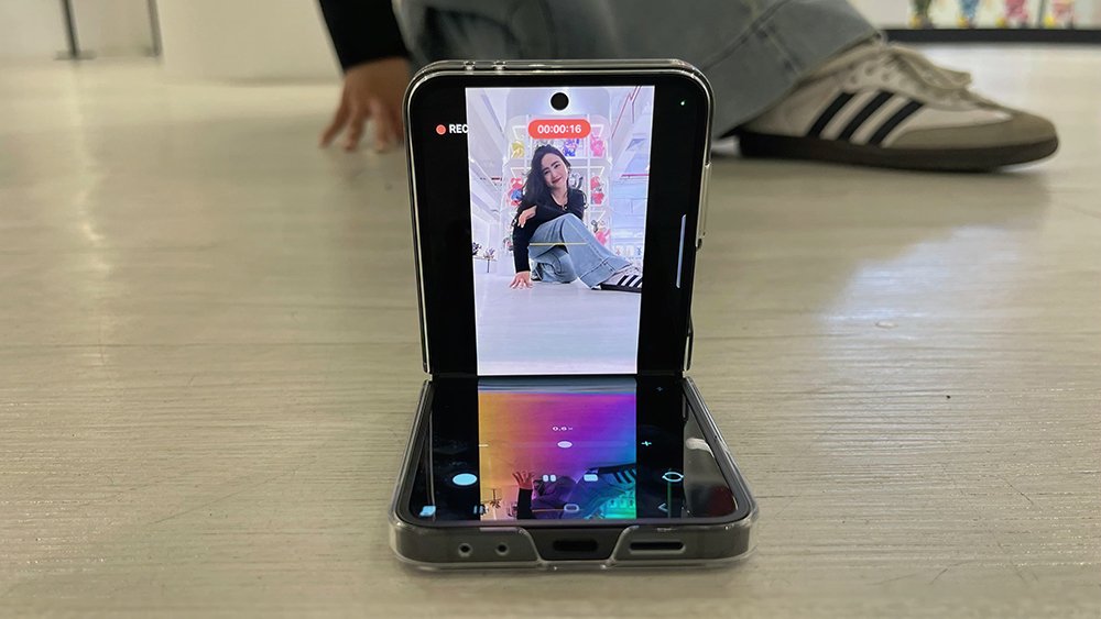 Flex Cam pada Galaxy Z Flip6 memungkinkan pengambilan konten kreatif dengan kamera 50 MP secara praktis, tanpa memerlukan alat tambahan