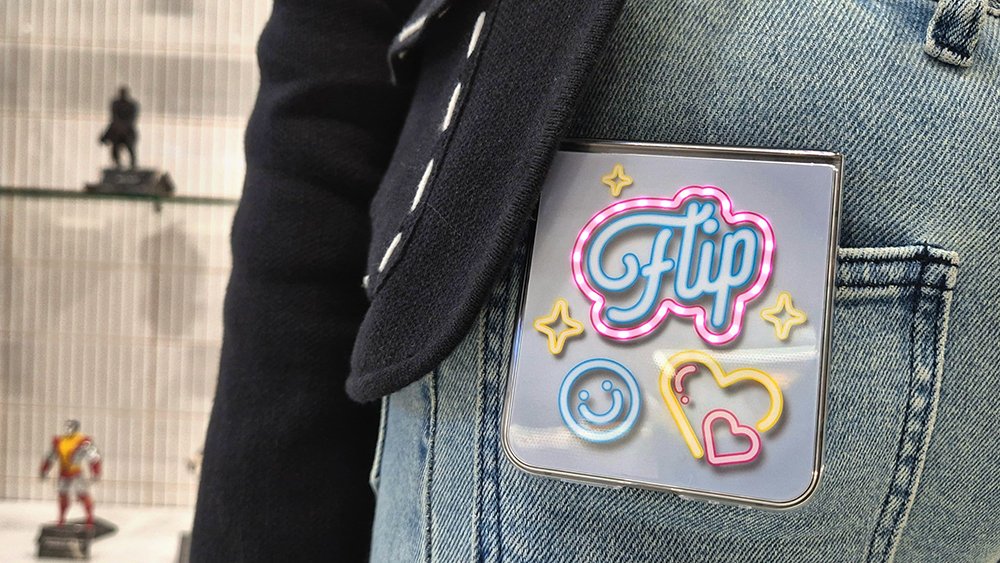Rasakan pengalaman interaktif dengan Flipsuit Case Galaxy Z Flip6, lengkap dengan dynamic wallpaper dan Flipsuit Card yang menyala