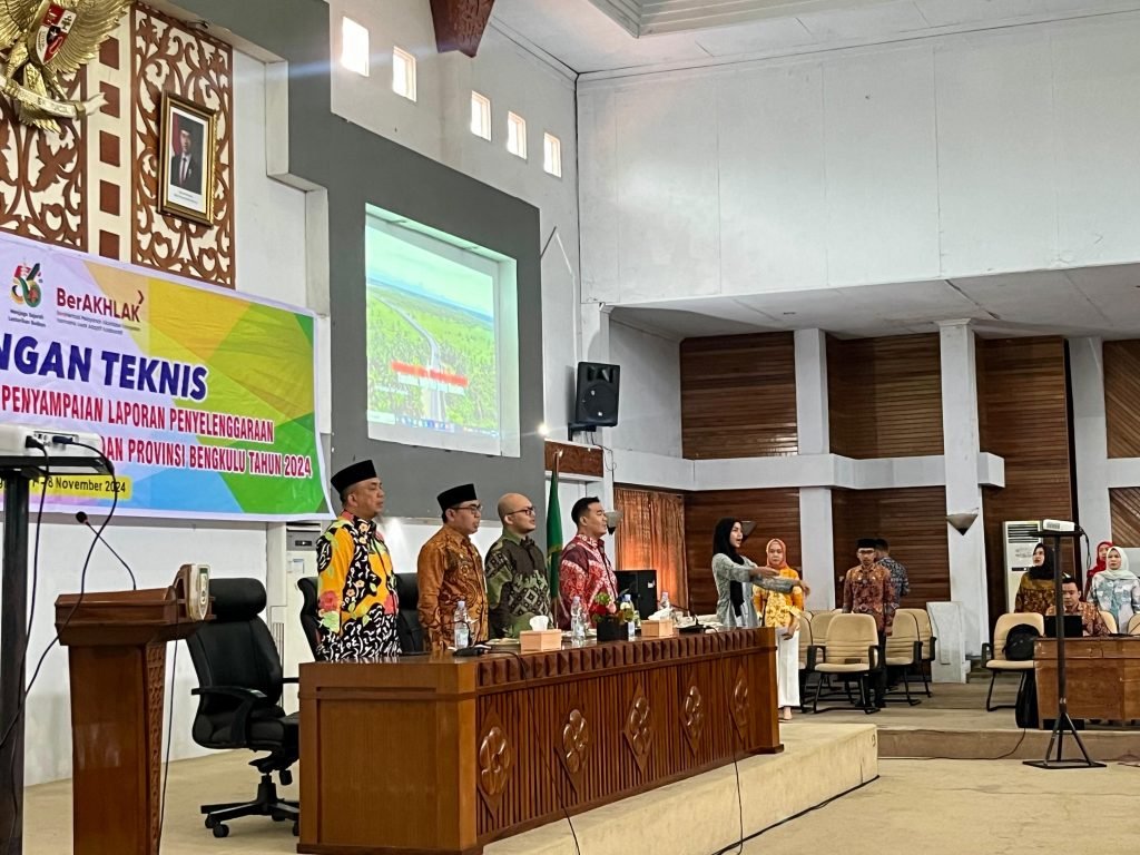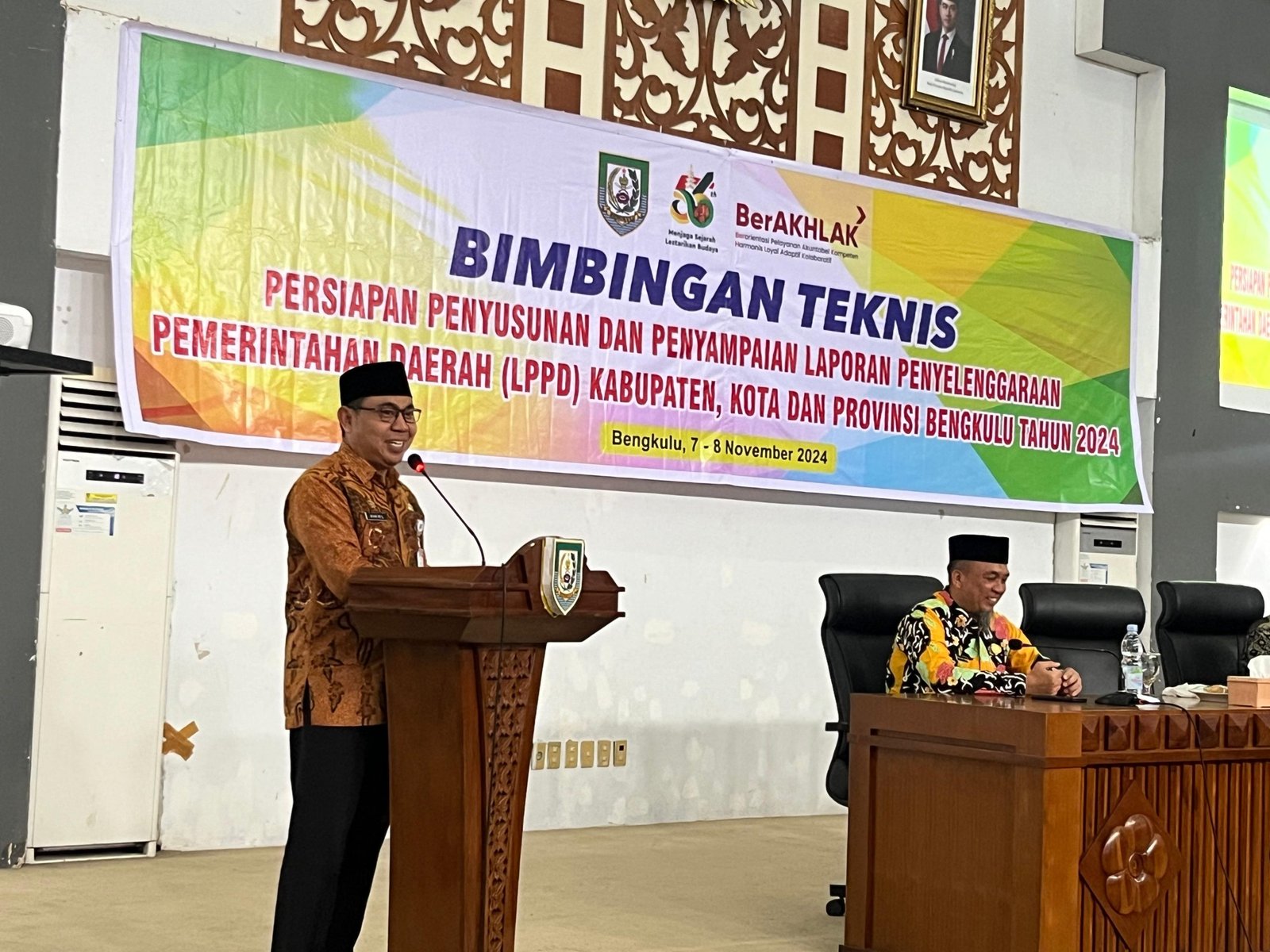 Asisten I Sekretariat Daerah Provinsi Bengkulu, Khairil Anwar resmi membuka kegiatan Bimbingan Teknis (Bimtek) persiapan penyusunan dan penyampaian Laporan Penyelenggaraan Pemerintah Daerah (LPPD) tahun 2024 untuk Kabupaten/Kota se-Provinsi Bengkulu.