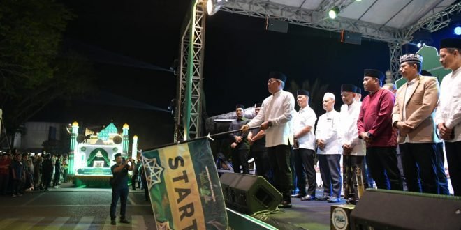 Banda Aceh – Asisten III Sekretaris Daerah Aceh, Muhammad Diwarsyah, melepas peserta pawai takbir menyambut Hari Raya Idul Adha 1446 Hijriah/2025 Masehi. Acara pelepasan berlangsung di depan Masjid Raya Baiturrahman, Banda Aceh, Kamis malam, 5 Juni 2025.