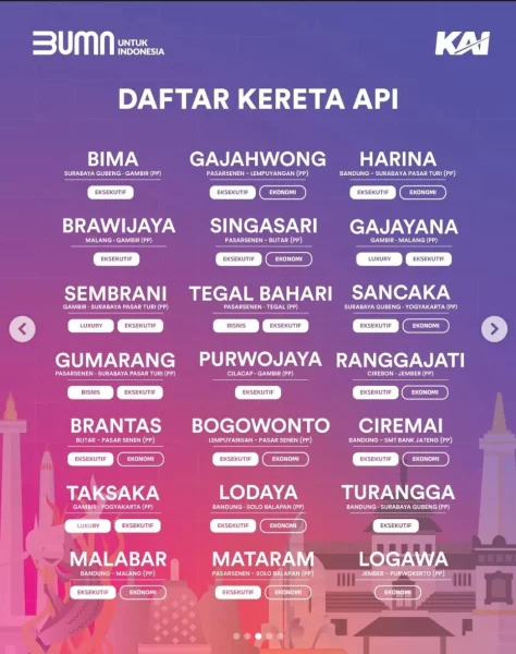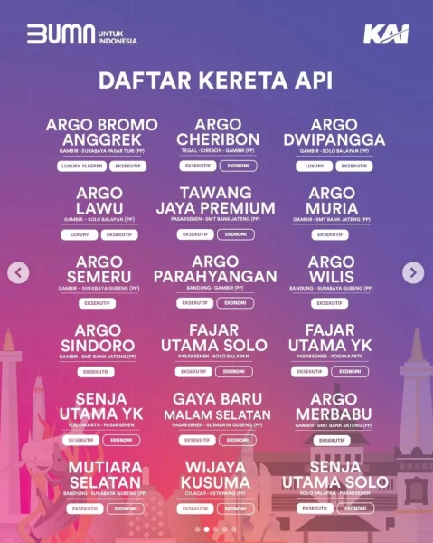 Pada event tersebut, KAI menjual tiket dengan diskon hingga 70% seperti tiket Kereta Luxury untuk semua tujuan dibanderol hanya Rp.499 ribu. Lalu untuk kelas eksekutif mulai dari Rp.129.000, kelas bisnis mulai dari Rp.99.000, dan kelas ekonomi mulai dari Rp.79.000 untuk periode keberangkatan sampai 18 Desember 2024.