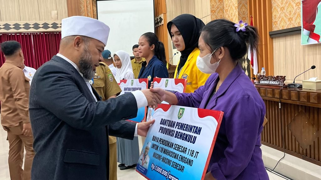 Dalam acara tersebut, Gubernur Helmi Hasan memberikan bantuan langsung kepada mahasiswa dan siswa dari Pulau Enggano sebagai bentuk komitmen pemerintah daerah dalam mendukung pendidikan dan pembangunan di pulau terluar tersebut.