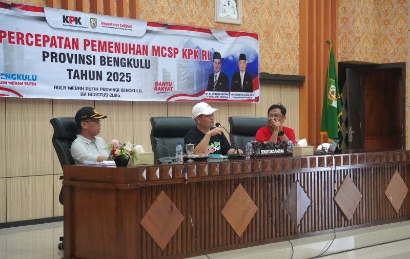 Pemerintah Provinsi Bengkulu terus memperkuat upaya pencegahan korupsi melalui percepatan implementasi Monitoring Controlling Surveillance for Prevention (MCSP) atau yang sebelumnya dikenal dengan Monitoring Center for Prevention (MCP) Komisi Pemberantasan Korupsi (KPK) RI Tahun 2025.