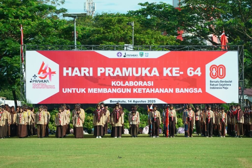 Di bawah langit Bengkulu yang cerah, derap langkah seragam cokelat memenuhi halaman Balai Raya Semarak. Semangat muda menyala di mata mereka, bagai obor yang tak pernah padam. Di sanalah, Gubernur Bengkulu Helmi Hasan memimpin Apel Besar peringatan Hari Pramuka ke-64 Tahun 2025, Kamis (14/8), menggaungkan pesan bahwa Pramuka adalah garda terdepan penyelamat generasi bangsa.