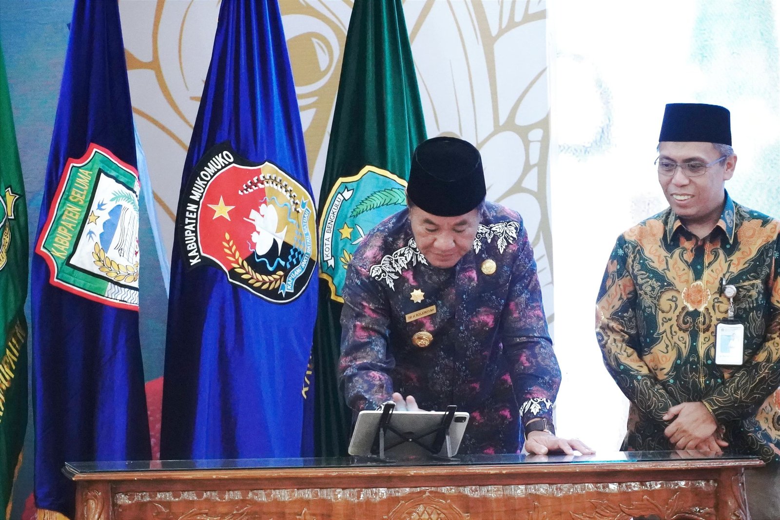 Pelaksana Tugas (Plt) Gubernur Bengkulu, Rosjonsyah, secara resmi menyerahkan Dokumen Pelaksanaan Anggaran (DIPA) dan Alokasi Transfer ke Daerah (TKD) Tahun Anggaran 2025 kepada pemerintah provinsi, kabupaten, dan kota di Bengkulu.