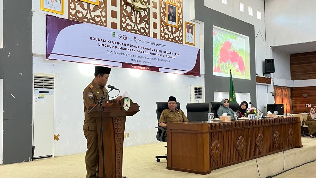 Pemerintah Provinsi Bengkulu menggelar edukasi keuangan bagi Aparatur Sipil Negara (ASN) dengan tema “ASN Pemerintah Provinsi Bengkulu Menuju Merdeka Finansial Melalui Pasar Modal”. Kegiatan ini berlangsung di Gedung Serbaguna Kantor Gubernur Bengkulu, Senin (25/8).