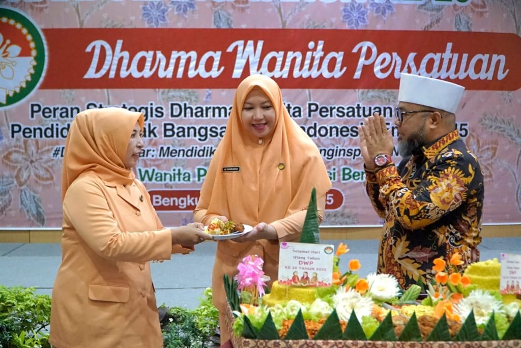 Rangkaian acara dilanjutkan dengan pemotongan dan pemberian tumpeng secara simbolis kepada perwakilan DWP dari organisasi perangkat daerah maupun instansi vertikal. Selain itu, turut diserahkan santunan dari BPJS Ketenagakerjaan Cabang Bengkulu dan Baznas Provinsi Bengkulu kepada kaum dhuafa.