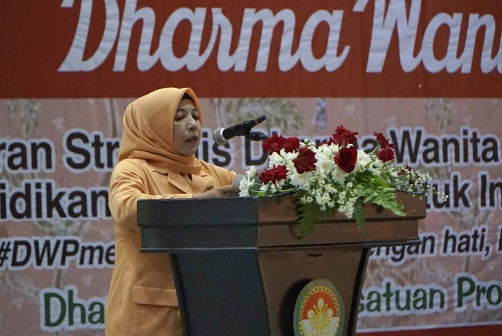 Ia juga menekankan pentingnya peran DWP dalam mendukung kinerja suami sebagai ASN agar bekerja secara profesional, jujur, dan amanah serta terhindar dari perilaku menyimpang seperti korupsi dan kolusi. Menurutnya, hal tersebut sangat dipengaruhi oleh pola dan tatanan kehidupan keluarga.