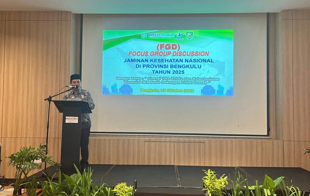 Penjabat Sekretaris Daerah Provinsi Bengkulu, Herwan Antoni, secara resmi membuka kegiatan Focus Group Discussion (FGD) Jaminan Kesehatan Nasional (JKN) Tahun 2025 di Hotel Mercure Bengkulu, Kamis (23/10).