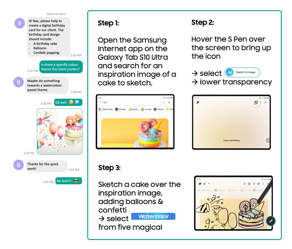 Ikuti cerita Rae, seorang intern yang menggunakan Galaxy AI sebagai asisten pribadinya untuk membuat ringkasan pekerjaan secara langsung, menciptakan artwork original, dan menguraikan rekaman suara. Dengan bantuan Galaxy AI, Rae memiliki peluang besar untuk menjadi intern yang paling menonjol!