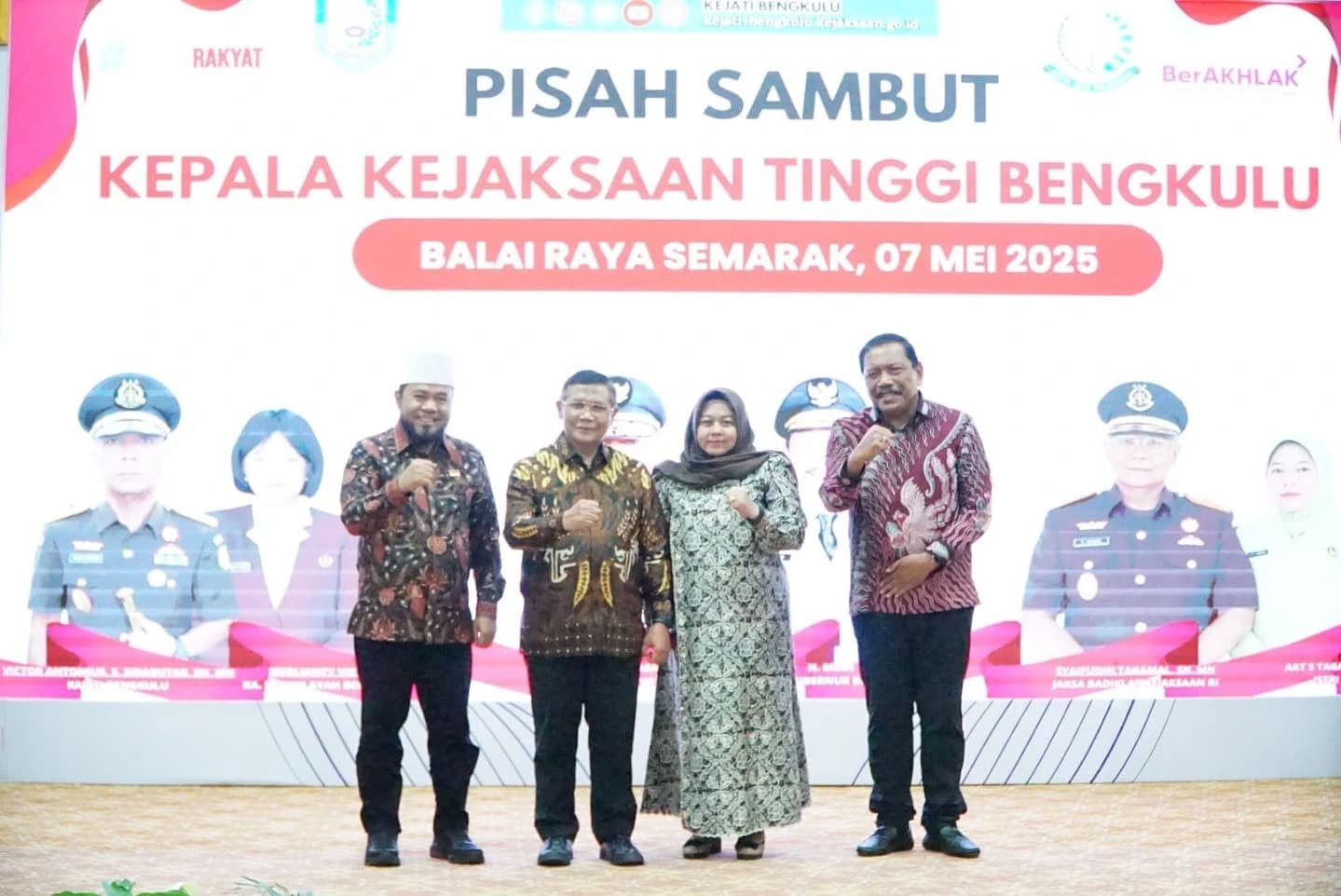 Gubernur Bengkulu Helmi Hasan bersama Wakil Gubernur Mian, menghadiri malam pisah sambut mantan Kepala Kejaksaan Tinggi Bengkulu Syaifudin Tagamal, pada Rabu(7/5) di Balai Raya Semarak