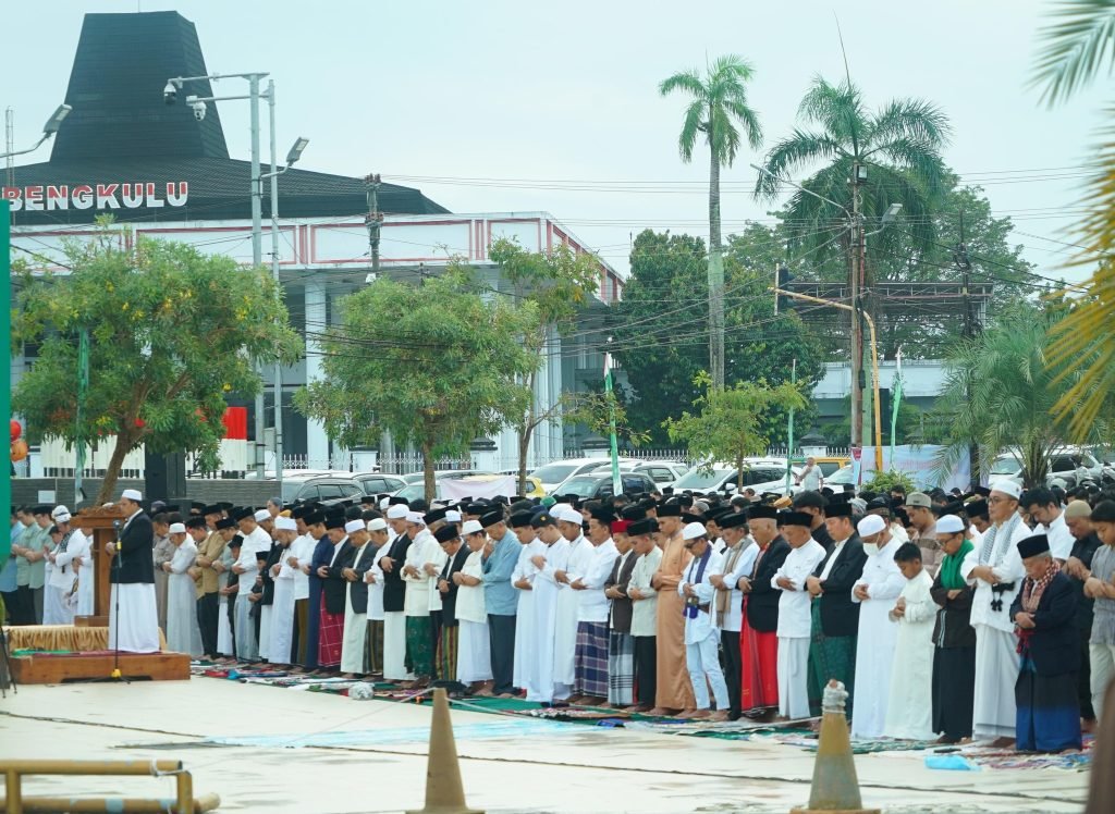 Dalam menyambut Hari Raya Idul Adha 1446 Hijriah, Gubernur Bengkulu Helmi Hasan bersama Wakil Gubernur Mian serta jajaran Forkopimda melaksanakan salat Idul Adha di Masjid Baitul Izzah pada Jumat pagi (6/6).