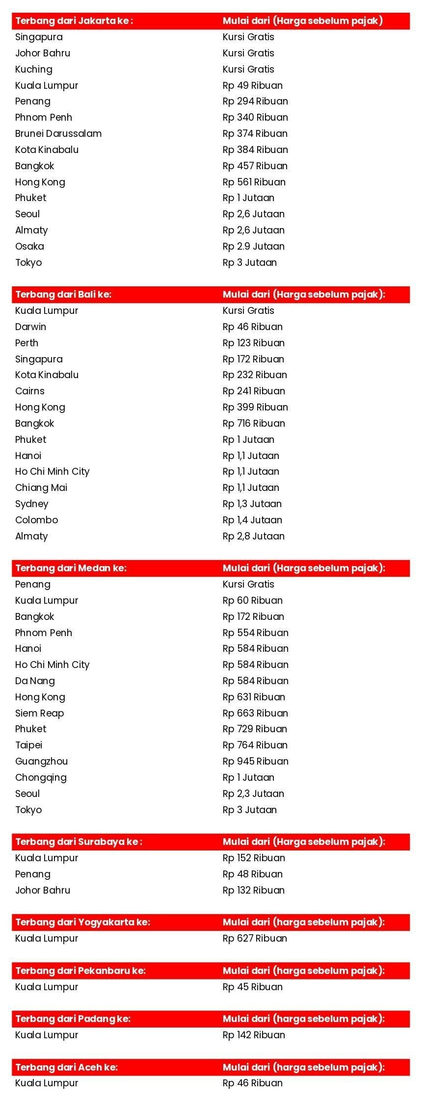 Untuk berita terkini, kegiatan, dan promosi terbaru airasia, ikuti X (x.com/airasia_indo), Facebook (facebook.com/flyairasia.id), dan Instagram (instagram.com/flyairasia.id).