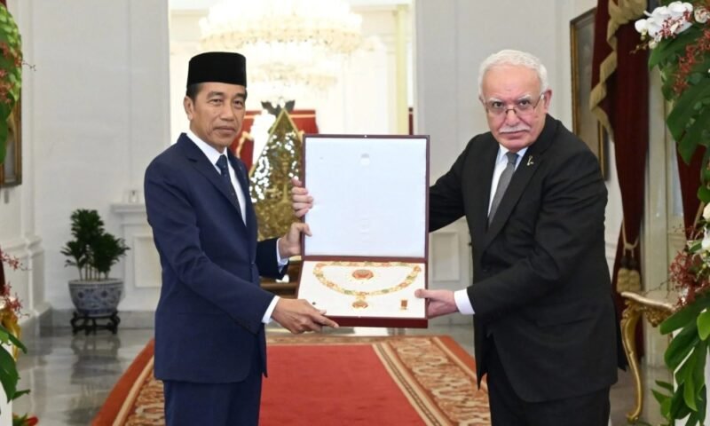 Presiden Joko Widodo menerima penghargaan tertinggi dari Pemerintah Palestina, “Grand Collar Order of the State of Palestine”, yang diserahkan oleh Utusan Khusus Presiden Palestina, Riyad Al Maliki, di Istana Merdeka, Jakarta, Senin, 19 Agustus 2024. Penghargaan ini diberikan sebagai bentuk pengakuan atas dukungan konsisten Indonesia terhadap perjuangan rakyat Palestina untuk kemerdekaan.