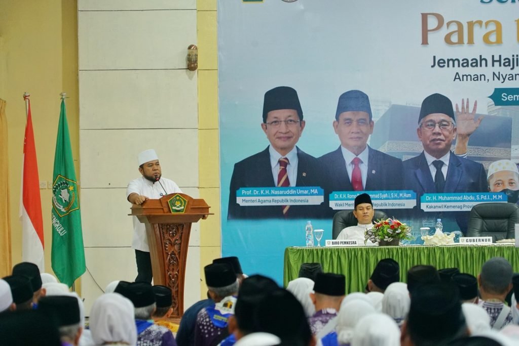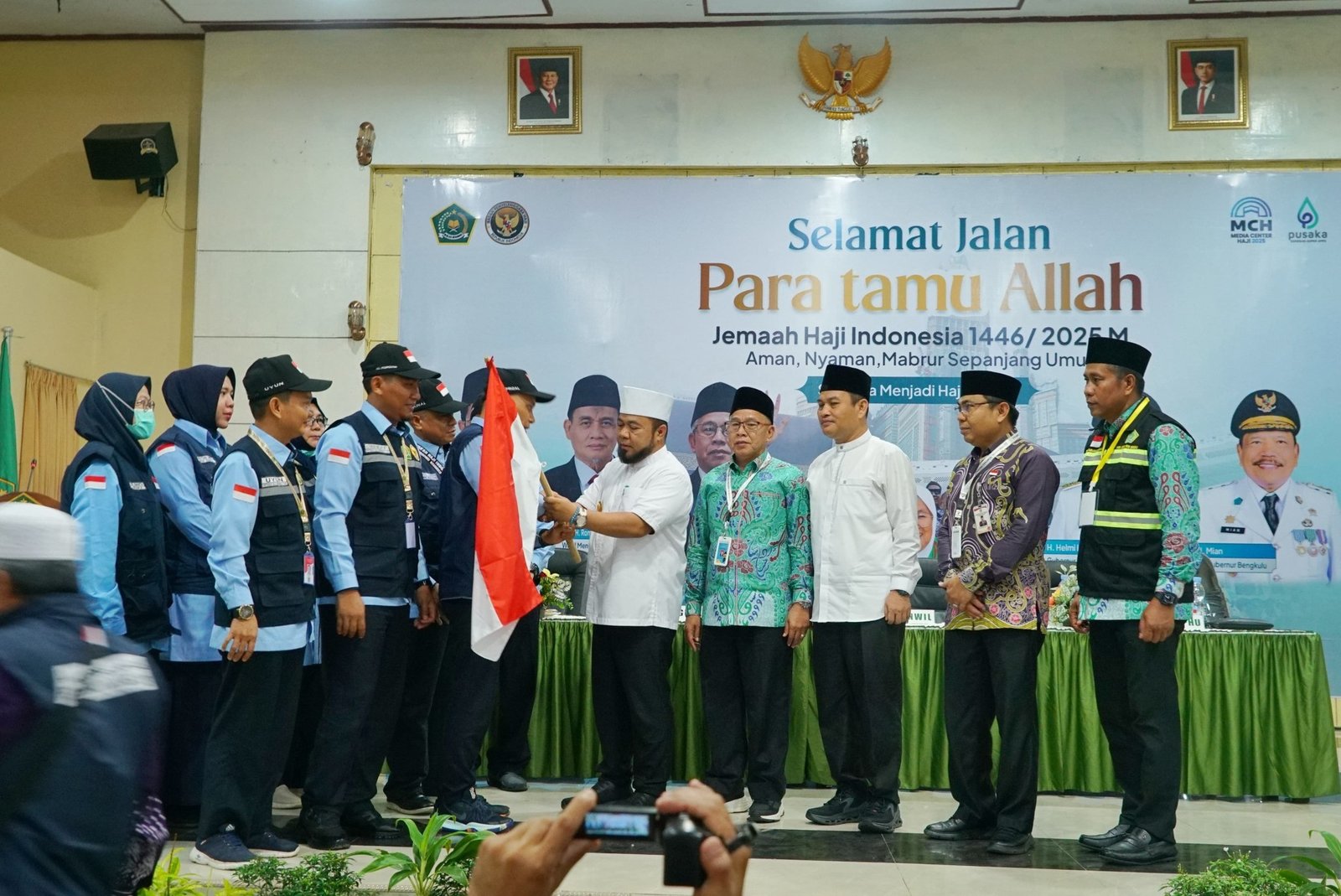 Dalam sambutannya, Gubernur Helmi Hasan menyampaikan rasa syukur dan kebanggaannya atas kesiapan para jamaah yang akan menunaikan rukun Islam kelima tersebut.