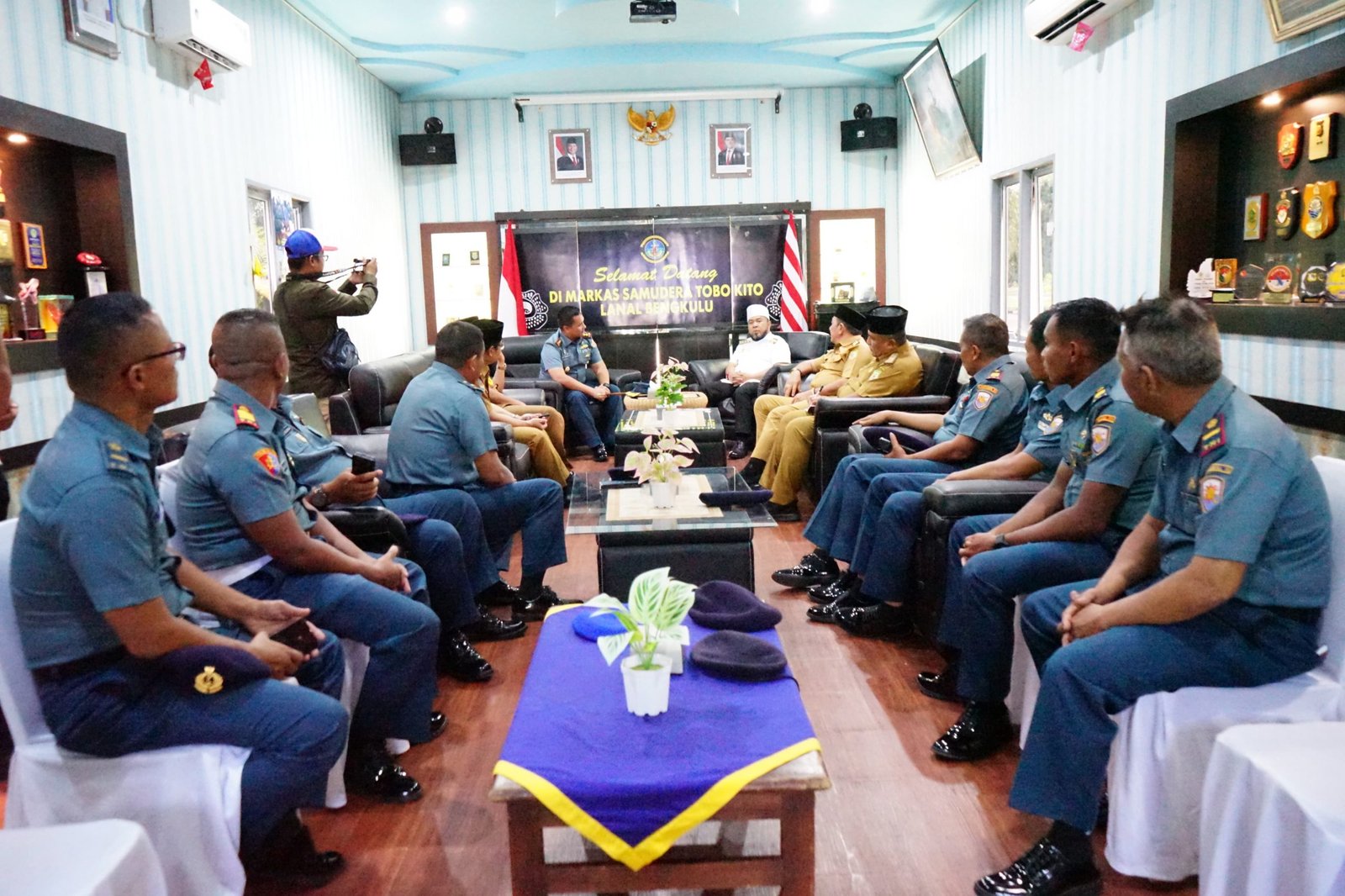 Gubernur Bengkulu, Helmi Hasan, bersama Wakil Gubernur Mian, didampingi Pj Sekda Provinsi Bengkulu, Haryadi, serta jajaran Pemerintah Provinsi Bengkulu, melakukan kunjungan kerja ke Markas Komando (Mako) Pangkalan TNI Angkatan Laut (Lanal) Bengkulu, Selasa (4/3).