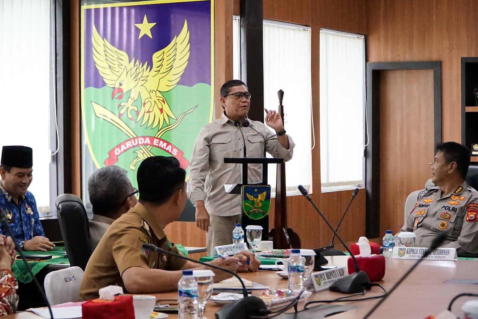 Kunjungan Kerja yang dilakukan oleh Letnan Jenderal TNI (Purn.) A.M. Putranto ini langsung diawali dengan menggelar rapat kordinasi bersama Wakil Gubernur, Kepala Daerah Kabupaten/Kota serta Forkopimda di Ruang Rapat Makorem 041 Gamas.