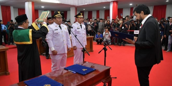 BANDA ACEH— Gubernur Aceh Muzakir Manaf atau Mualem resmi melantik H. Zulkifli H. Adam dan Drs. Suradji Junus sebagai Wali Kota dan Wakil Wali Kota Sabang dalam rapat paripurna DPRK Sabang, di Kantor DPRK Sabang, pada Sabtu, (14/6/2025).