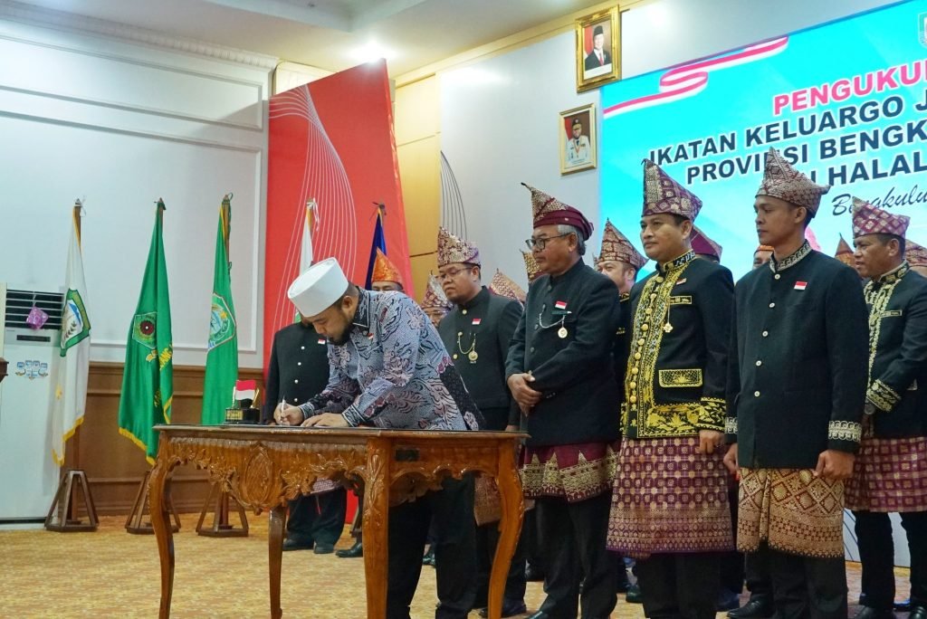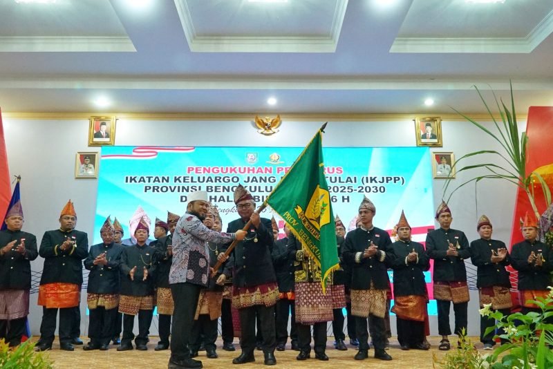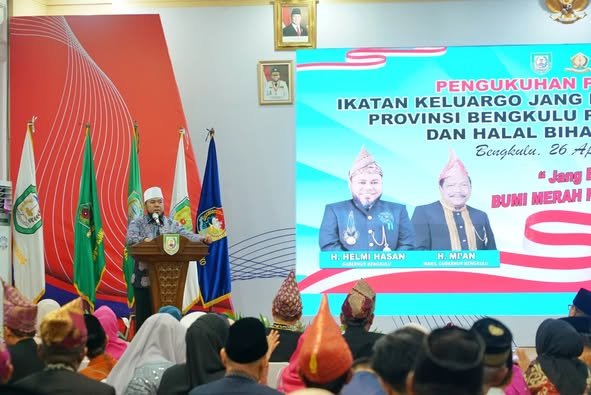 Gubernur Bengkulu Helmi Hasan, secara resmi mengukuhkan kepengurusan Ikatan Keluarga Jang Pat Petulai (IKJPP) periode 2025-2030 dalam acara yang dirangkaikan dengan Halal Bihalal 1446 Hijriah di Balai Raya Semarak Bengkulu, Sabtu (27/4).