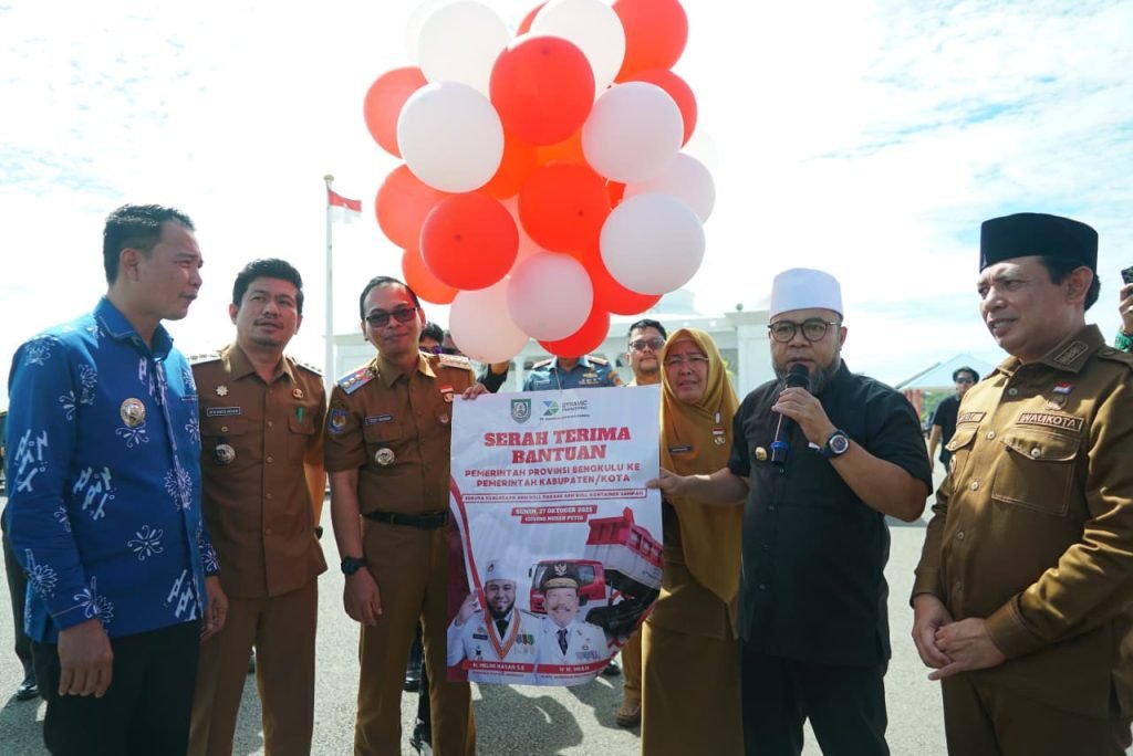 Penyerahan bantuan tersebut dilaksanakan di Balai Kota Merah Putih, Kota Bengkulu, Senin siang (27/10), dan diterima langsung oleh para bupati dan wali kota dari masing-masing daerah penerima.