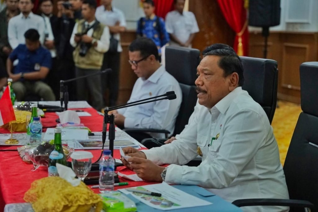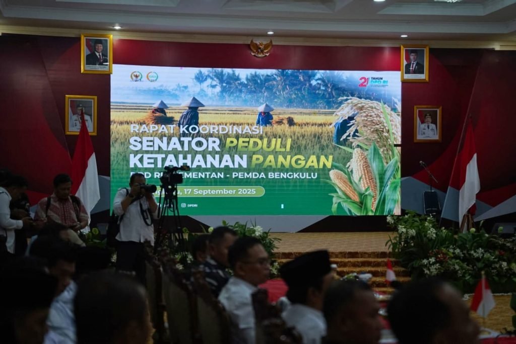 Pasca inspeksi mendadak di Pasar Panorama, Menteri Pertanian RI Andi Amran Sulaiman bersama Ketua DPD RI Sultan B. Najamudin dan Wakil Gubernur Bengkulu Mian langsung menggelar Rapat Koordinasi Senator Peduli Ketahanan Pangan di Balai Raya Semarak Bengkulu, Rabu (17/9).