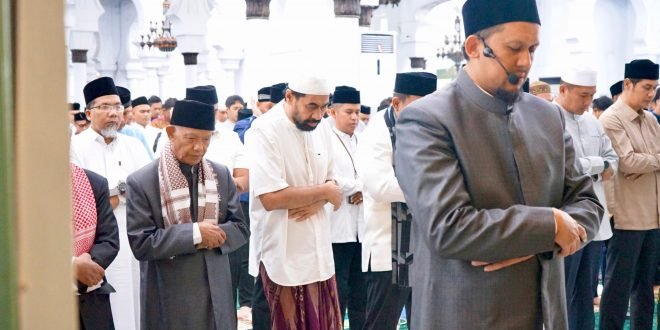 Banda Aceh – Gubernur Aceh, Muzakir Manaf (Mualem), melaksanakan Salat Iduladha 1446 Hijriah yang dipusatkan di Masjid Raya Baiturrahman, Banda Aceh, pada Jumat, 6 Juni 2025. Mualem tiba menjelang pelaksanaan salat bersama sang istri, Marlina Usman.