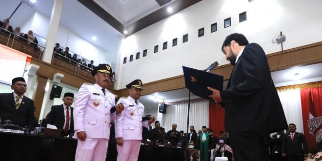 SIGLI – Gubernur Aceh Muzakir Manaf resmi melantik Sarjani Abdullah dan Alzaizi sebagai Bupati dan Wakil Bupati Pidie periode 2025-2030. Prosesi pelantikan dan pengambilan sumpah berlangsung dalam rapat paripurna DPRK Pidie di kantor dewan setempat, Selasa (18/2/2025).