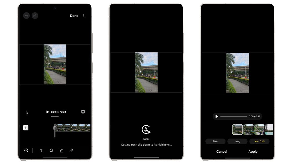 Selain itu, fitur Auto Trim juga tak boleh dilewatkan, khususnya buat kamu yang suka bikin konten-konten liburan. Fitur ini akan membantu kamu bikin konten highlight liburan dari banyak video dengan praktis tanpa harus jago editing. Kamu hanya perlu memilih video-video terbaik, lalu Auto Trim akan otomatis mengambil frame-frame paling menarik yang kemudian dijahit menjadi satu video yang epic. Kamu pun masih bisa edit video highlight tersebut agar hasilnya lebih personal dan semakin sesuai keinginan.