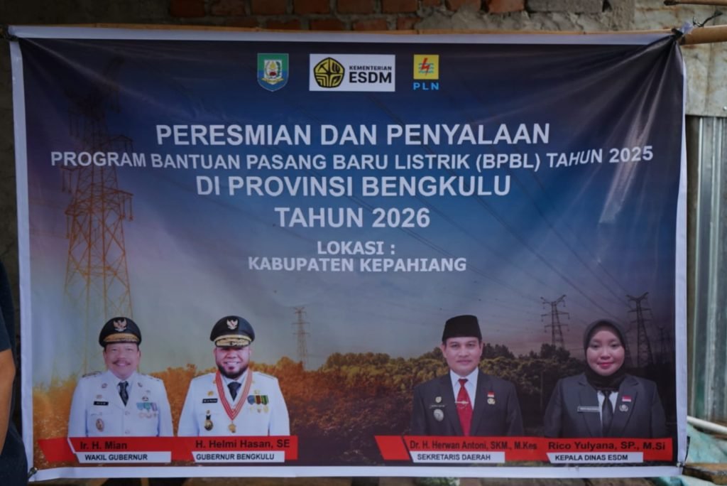 Gubernur Helmi Hasan didampingi Wakil Gubernur Mian mengunjungi kediaman Sunania, warga Pasar Ujung, Kabupaten Kepahiang, Kamis (26/2). Kunjungan tersebut dilakukan dalam rangka penyerahan bantuan pasang baru listrik tahun 2026 kepada warga yang membutuhkan.