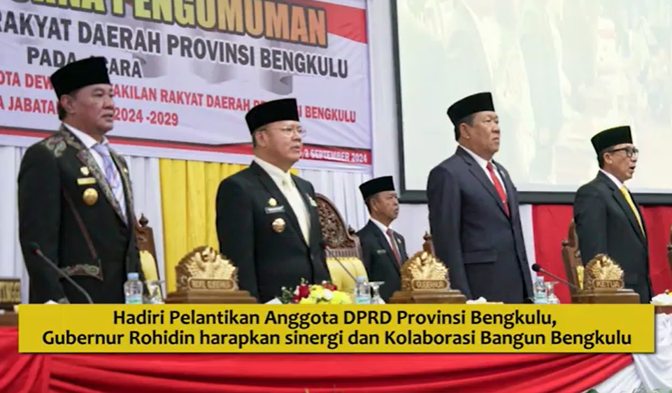Pelantikan DPRD Prov Bkl, Gubernur Rohidin Serukan Sinergi untuk Membangun Bumi Rafflesia Lebih Maju