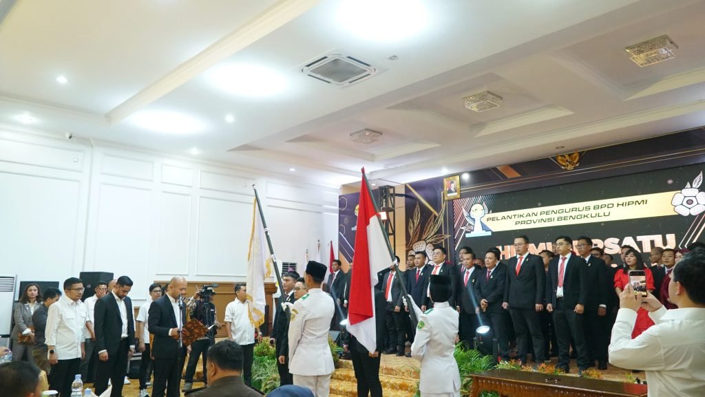 Pelantikan Badan Pengurus Daerah (BPD) Himpunan Pengusaha Muda Indonesia (HIPMI) Provinsi Bengkulu periode 2024-2027 berlangsung meriah di Balai Raya Semarak Bengkulu, Kamis (19/12).