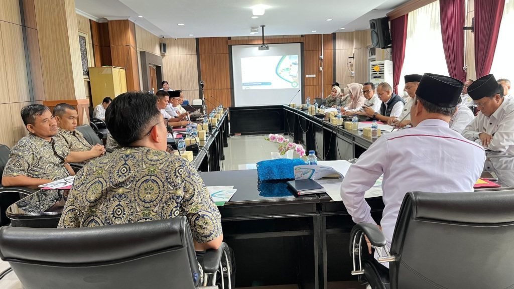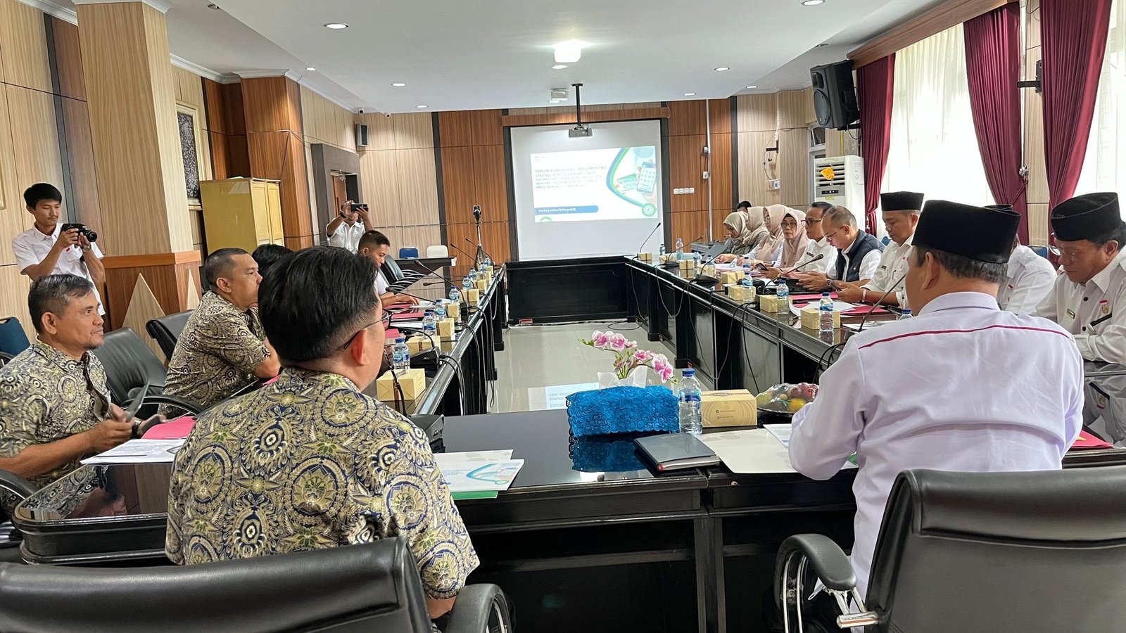 Penjabat Sekretaris Daerah Provinsi (Sekdaprov) Herwan Antoni memimpin rapat koordinasi dan komunikasi implementasi strategi penguatan rekrutmen cakupan dan tingkat keaktifan peserta mencapai Universal Health Coverege Provinsi Bengkulu tahun 2025 di Ruang Rapat Merah Putih, Kantor Gubernur, Rabu (18/6/2025).
