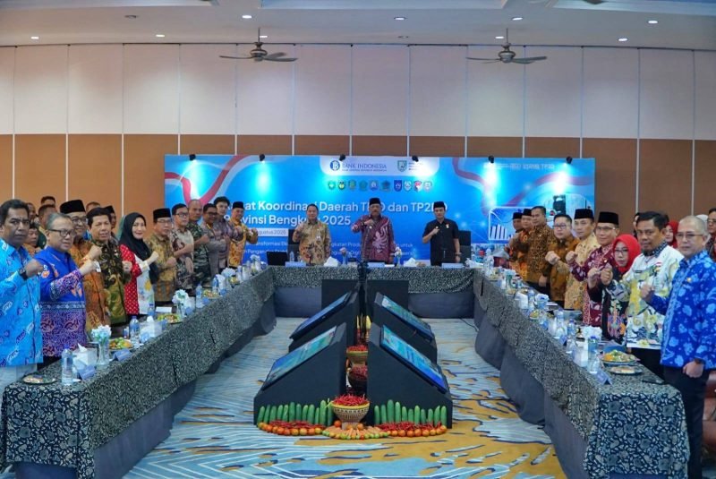 Rapat Koordinasi Daerah (Rakorda) Tim Pengendalian Inflasi Daerah (TPID) dan Tim Percepatan dan Perluasan Digitalisasi Daerah (TP2DD) Provinsi Bengkulu Tahun 2025 digelar di Hotel Grage Horizon, Jumat (29/8) siang.