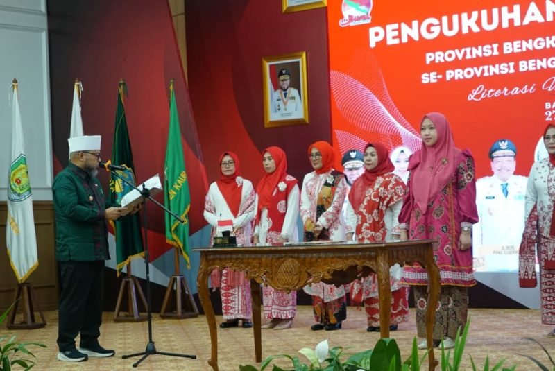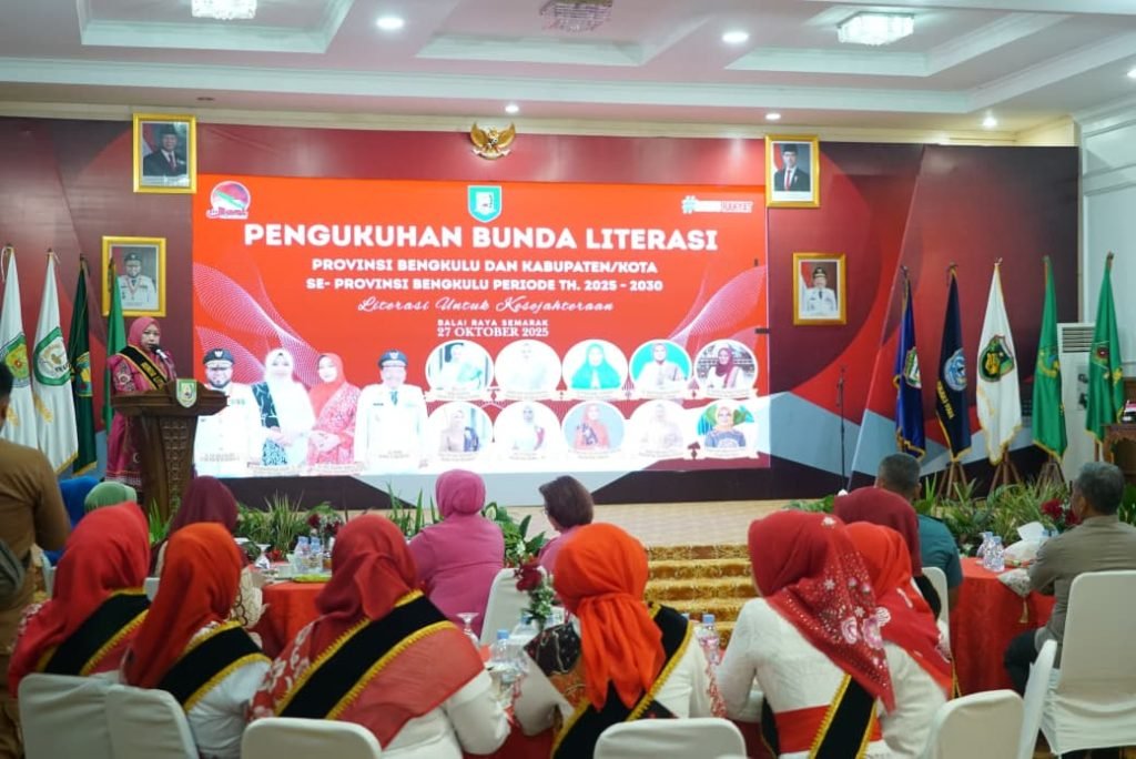 Pemerintah Provinsi Bengkulu mengukuhkan Bunda Literasi Provinsi Bengkulu serta Bunda Literasi dari seluruh kabupaten/kota periode 2025–2030 di Balai Raya Semarak Bengkulu, Senin (27/10).