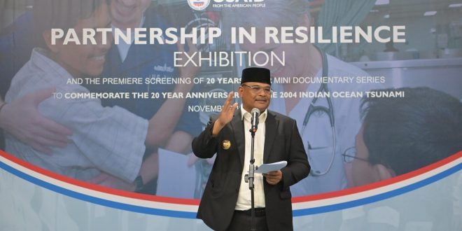 Banda Aceh – Masyarakat Aceh menyampaikan apresiasi dan terima kasih kepada pemerintah dan masyarakat Amerika Serikat atas dukungan yang diberikan selama proses pemulihan pasca-bencana tsunami pada 2004 silam. Hal tersebut disampaikan Penjabat Gubernur Aceh Dr. H. Safrizal ZA, M.Si., saat pembukaan pameran USAID bertema Kemitraan yang Tangguh, di Museum Tsunami Aceh, Minggu, 10/11/2024.