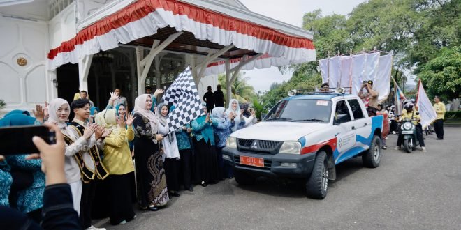 Banda Aceh – Ketua Tim Penggerak PKK Aceh, Marlina Muzakir, secara resmi melepas Kirab Bangga Kencana dalam rangka memperingati Hari Keluarga Nasional (Harganas) ke-32 tahun 2025. Pelepasan kirab berlangsung di halaman Meuligoe Gubernur Aceh, Jumat (20/6), dan turut dihadiri oleh Kepala Perwakilan BKKBN Provinsi Aceh, Safrina Salim, serta sejumlah pejabat terkait lainnya.
