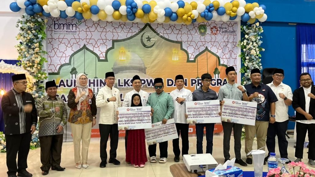 Kegiatan kemudian dilanjutkan dengan penyaluran imbal hasil wakaf BMM bersama Bank Fadhila Bengkulu Seri 01 berupa Al-Qur’an Braille kepada penyandang tunanetra, serta diakhiri dengan sesi foto bersama dan buka puasa bersama