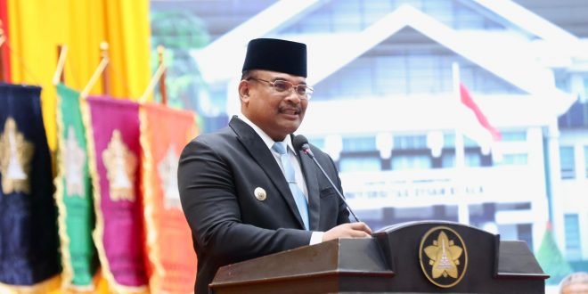 Banda Aceh – Penjabat Gubernur Aceh, Dr. H. Safrizal ZA., M.Si., yang juga menjabat sebagai Ketua Dewan Wali Amanat Universitas Syiah Kuala (USK), menghadiri pengukuhan lima guru besar baru USK di Gedung AAC Dayan Dawood, Rabu (5/2/2025).
