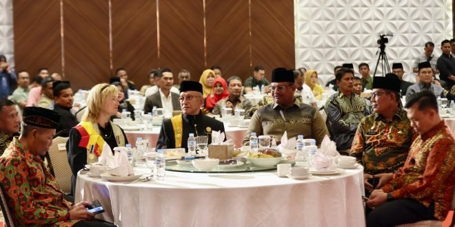 Banda Aceh – Penjabat Gubernur Aceh, Dr. H. Safrizal ZA., M.Si., bersama Plt. Sekda, Muhammad Diwarsyah, menghadiri acara Pemberian Gelar Kehormatan Wali Nanggroe Aceh Tahun 2024 di Ayani Hotel, Banda Aceh, Rabu, 4/12/2024. Kegiatan ini menandai penghargaan kepada tokoh-tokoh yang telah memberikan kontribusi signifikan bagi kemajuan Aceh di berbagai bidang, baik dari dalam negeri maupun mancanegara.