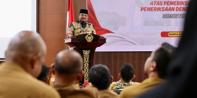 Banda Aceh – Penjabat Gubernur Aceh, Dr. H. Safrizal ZA, M.Si., menekankan pentingnya transparansi dan akuntabilitas dalam pengelolaan keuangan daerah. Hal itu disampaikan dalam acara Penyerahan Laporan Hasil Pemeriksaan (LHP) atas Pemeriksaan Kinerja dan Pemeriksaan dengan Tujuan Tertentu (PDTT) Semester II Tahun 2024 oleh Badan Pemeriksa Keuangan (BPK) Perwakilan Aceh, Senin, 23/12/2024.