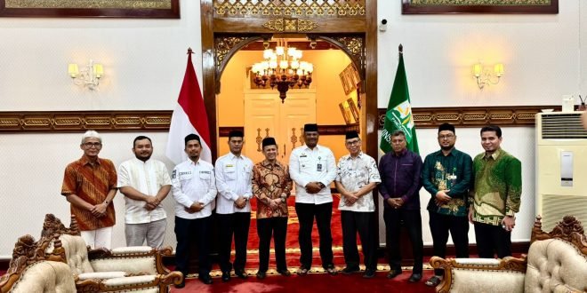 Banda Aceh – Penjabat Gubernur Aceh Dr H Safrizal ZA M.Si menerima audiensi pengurus Dewan Masjid Indonesia (DMI) Aceh yang dipimpin Ketua DMI Aceh, Tgk. Fakhruddin Lahmudin di Meuligoe Gubernur, Rabu (8/1). Dalam pertemuan itu DMI Aceh mengundang Pj Gubernur Safrizal untuk membuka Musyawarah Wilayah (Muswil) ke-III Dewan Masjid Indonesia (DMI) Aceh yang akan berlangsung pada Sabtu (11/1) di Banda Aceh.