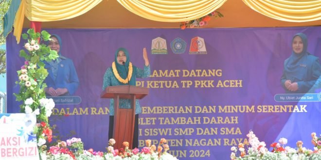 Hal tersebut disampaikan oleh Pj Ketua TP PKK Aceh Safriati, dalam sambutannya saat berkunjung ke SMP Negeri 1 Seunagan dalam rangka pemberian tablet tambah darah untuk siswi SMP dan SMA. Kegiatan yang dilaksanakan dalam rangka peringatan Hari Ibu 2024 ini bertujuan untuk pencegahan stunting sejak dini, Senin (2/12/2024).