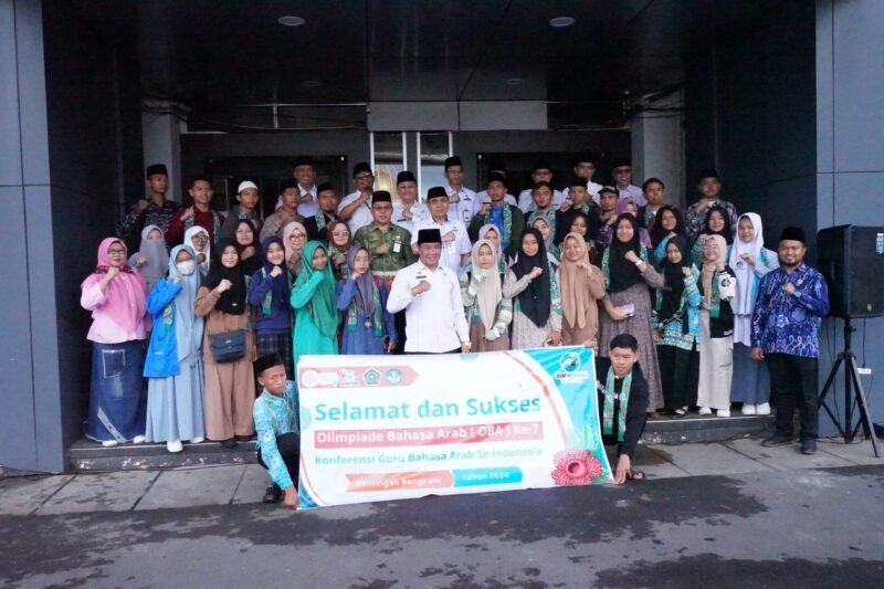 Plt Gubernur Bengkulu, Rosjonsyah, memimpin apel pagi yang dirangkaikan dengan pelepasan peserta Olimpiade Bahasa Arab (OBA) Ke-7 Tahun 2024 di Lapangan Apel Kantor Gubernur, Rabu (6/11) pagi.