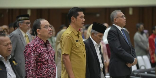 BANDA ACEH— Plt Sekretaris Daerah Aceh, Muhammad Nasir, menghadiri sidang terbuka senat akademik Universitas Syiah Kuala dalam rangka pengukuhan 5 profesor baru, di Gedung AAC Dayan Dawood, Selasa, (22/4/2025).