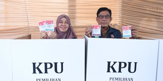 Banda Aceh – Plt Sekda Aceh, Muhammad Diwarsyah, bersama istrinya, menyalurkan hak suaranya di TPS 1, Gampong Ie Masen Kayee Adang, Kecamatan Syiah Kuala, Banda Aceh, pada Rabu, 27 November 2024. Tiba di lokasi pemungutan suara sekitar pukul 09.00 pagi, Diwarsyah disambut hangat oleh perangkat desa dan warga setempat.