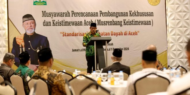 BANDA ACEH— Plt Sekda Aceh Muhammad Diwarsyah, menyambut baik Musyawarah Perencanaan Pembangunan (Musrenbang) Keistimewaan yang mengangkat tema standarisasi kesehatan dayah di Aceh yang digelar oleh Lembaga Wali Nanggroe.