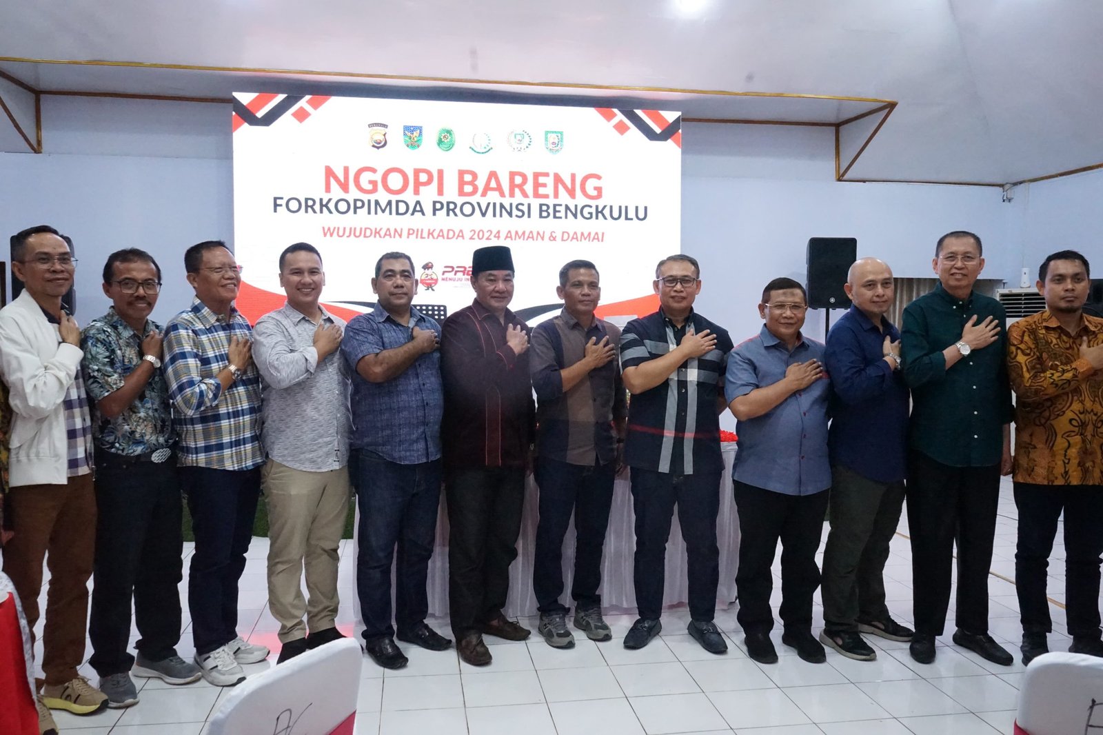 Dalam rangka menyukseskan Pilkada 2024 yang aman dan damai, Polda Bengkulu menggelar acara “Ngopi Bareng Forkopimda Provinsi Bengkulu Wujudkan Pilkada 2024 Aman & Damai” di aula rumah dinas Kapolda Bengkulu, Jumat (4/10/2024) malam.