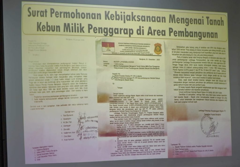 Adapun lahan yang dibahas dalam rapat tersebut memiliki luas sekitar 93.720 meter persegi dan berlokasi di Kelurahan Sukarami, Kecamatan Selebar, Kota Bengkulu.