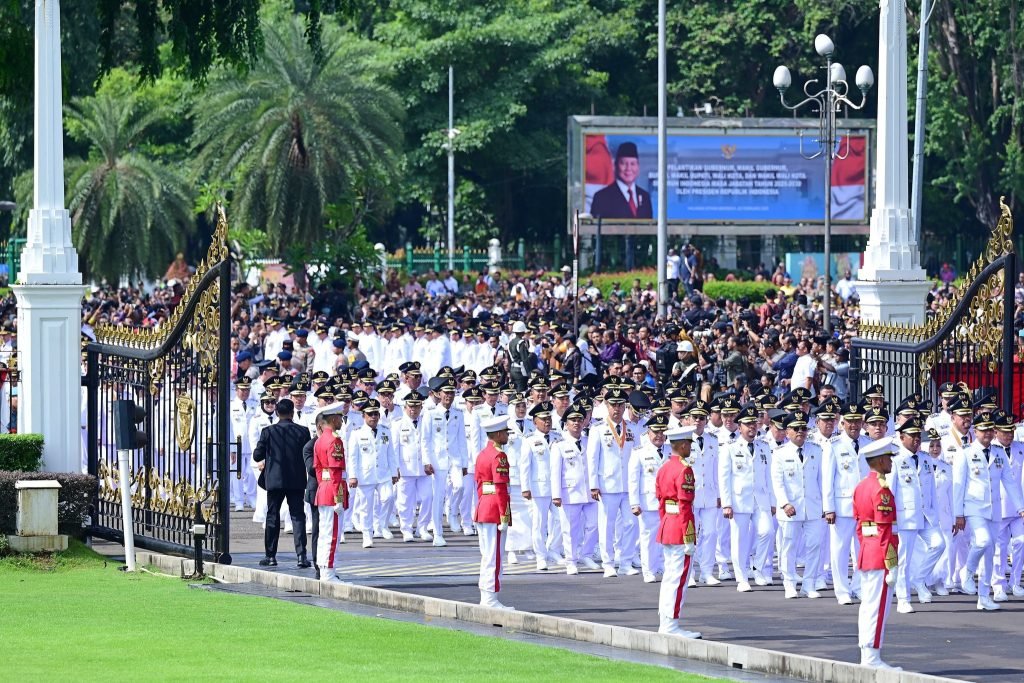 Jakarta – Presiden Prabowo Subianto secara resmi melantik kepala daerah terpilih dalam Pilkada Serentak 2024 di halaman Istana Kepresidenan Jakarta, Kamis (20/2/2025). Dalam pelantikan ini, sebanyak 961 kepala daerah dilantik, yang terdiri dari 33 gubernur dan wakil gubernur, 363 bupati, 362 wakil bupati, serta 85 wali kota dan wakil wali kota.
